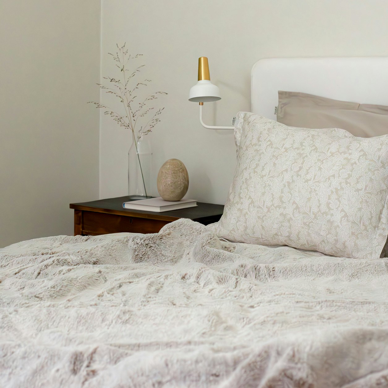 CURA Elegance is our most exclusive weighted blanket. The surface is wonderfully soft and silky and made from high-quality artificial fur. The coat has a beautiful shine, does not shed and lasts very well over time. The back of the blanket matches the top layer and is made from velvet fabric and offers the same high quality, durability and softness.